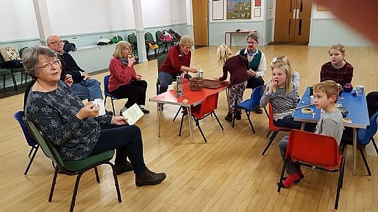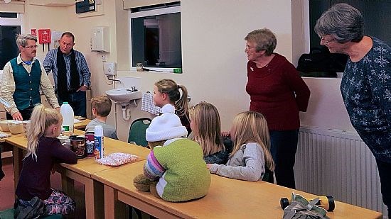 While the candles were cooling, we moved to the main part of the Hall where we all consumed hot chocolate, biscuits and cake. Paul then told us of a letter that Parson Burnside had written about there being hidden snowdrops and buried treasure in the churchyard, all guarded by angels.