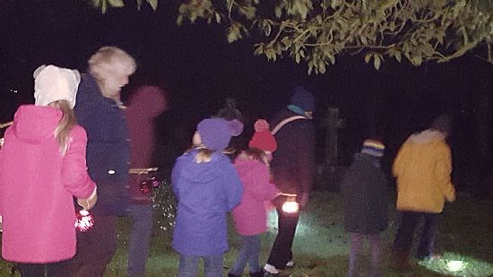 We made our way over to the churchyard where we searched for the items mentioned in Parson Burnside’s letter, by the light of our home-made candles.